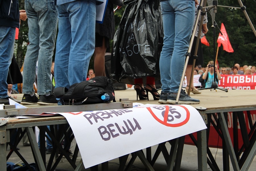 В десятках российских городов 28 июля прошли митинги против повышения пенсионного возраста, большинство из которых были организованы КПРФ. В Москве согласованная акция прошла на проспекте Сахарова. КПРФ оценивает число участников в 100 тысяч человек. В МВД заявили, что на митинг пришли 6,5 тысячи человек, организация «Белый счетчик» сообщила об участии более 12 тысяч. Интересно, что такая резкая разница в оценках характерна и для митингов в других городах.