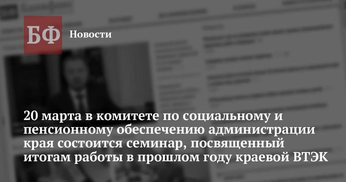 Организатором семинара выступил комитет по социальному и пенсионному обеспечению краевой администрации. В его работе примут участие заместитель главы администрации края Яков Шойхет, председатель комитета по социальному обеспечению Юрий Самодуров, начальник отдела по социальным вопросам администрации края Александр Киричков.