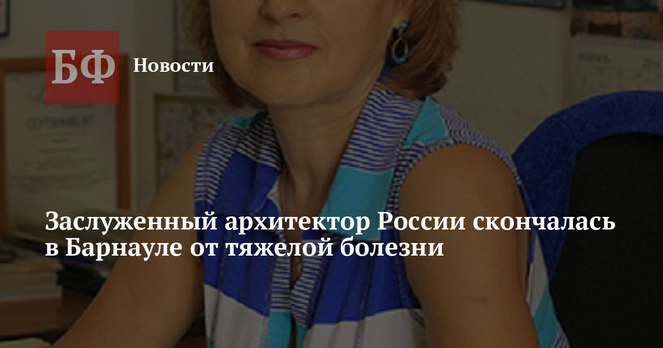Как стало известно, в последнее время Евгения Реутова тяжело болела, что и привело к кончине. «В это трудно поверить… Талантливый архитектор, дочь нашего барнаульского архитектора Николая Кубарева. Женя была оптимистка по жизни. С ее творчеством можно не соглашаться и спорить, но оно есть и активно формирует современный Барнаул. В прошлом году она стала Заслуженным архитектором России. Бесконечно жаль. Наши соболезнования семье и вечная память», — написал Александр Деринг в память о ней в Сети.