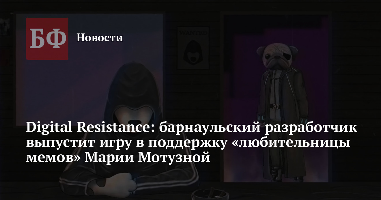 Барнаульское издательство Dagestan Technology готовит к выпуску компьютерную игру Digital Resistance («Цифровое сопротивление»), часть дохода от продаж которой передадут обвиняемой в экстремизме за мемы Марии Мотузной. Игра планируется к релизу в популярном интернет-магазине Steam 7 сентября.
