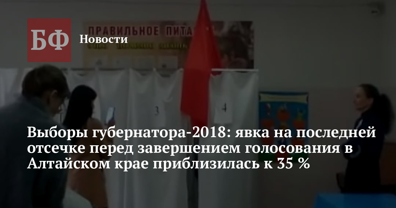 К вечеру 9 сентября избиратели традиционно снизили активность по явке на выборы губернатора Алтайского края. По данным крайизбиркома, она составила 33,28%, на участки пришли почти 610 тысяч избирателей. Для сравнения, на то же время на выборах губернатора в 2014 году явка составляла 30,91%.