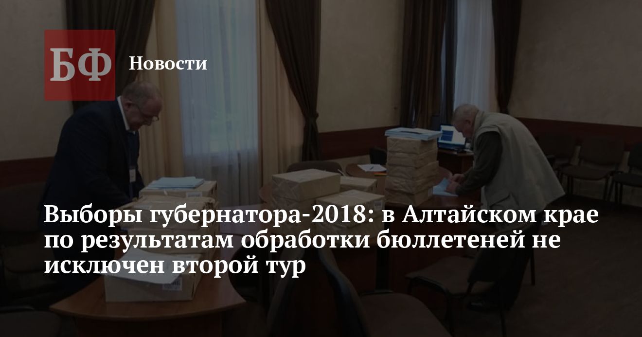По результатам обработки 19,03% бюллетеней явка на выборах составила около 35%. Для сравнения, в 2014 году на участки пришли 34,38% от зарегистрированных избирателей. Из анализа этих протоколов следует, что врио губернатора Алтайского края Виктор Томенко (ЕР) набирает 52,08% голосов, лидер фракции ЛДПР в Алтайском Заксобрании Владимир Семенов — 17,09%, депутат АКЗС от «Справедливой России» Людмила Суслова — 14,57%, предприниматель Андрей Крылов — 13,76%. Отметим, что по данным ИА «Банкфакс» в регионе есть как минимум несколько участков, где Виктор Томенко не занял первое место. Второй тур будет объявлен, если не один из кандидатов не наберет более 50% голосов. Пока такая вероятность есть.