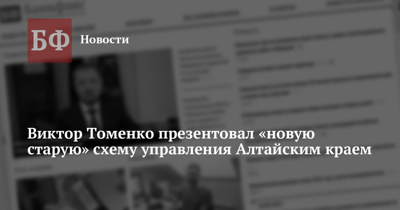 15 октября губернатор Алтайского края Виктор Томенко обсудил с представителями Алтайского Заксобрания разработанную его командой структуру органов исполнительной власти региона. Парламентарии оценили ее весьма комплиментарно, а наблюдатели отметили, что новая схема во многом напоминает систему управления регионом, успешно функционировавшую еще в период губернаторства Александра Сурикова.