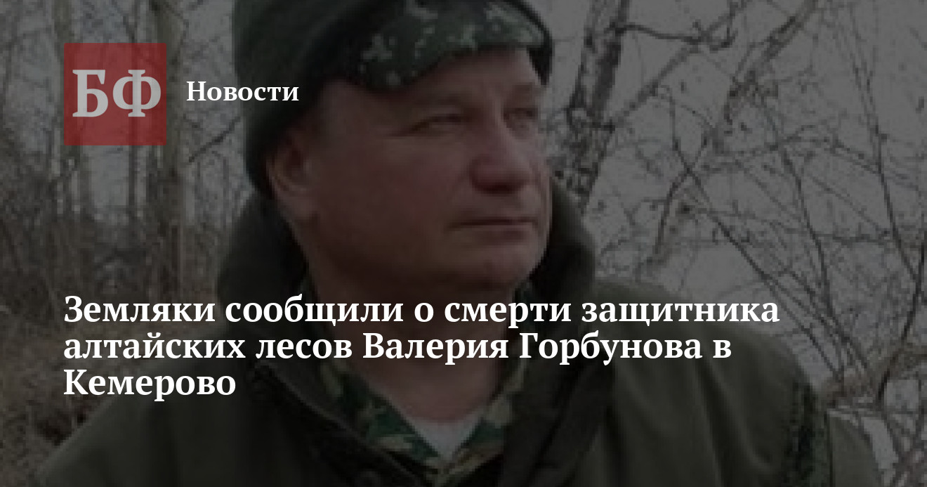 Вечером 15 октября в Кемерово в возрасте 55 лет скончался алтайский активист ОНФ, подполковник запаса Валерий Горбунов. Об этом на свой странице в соцсети Facebook сообщил Сергей Шуленин. По его словам, отставному военному просто внезапно стало плохо. Прощание с усопшим пройдет 18 октября в родительском доме в селе Новоегорьевское.