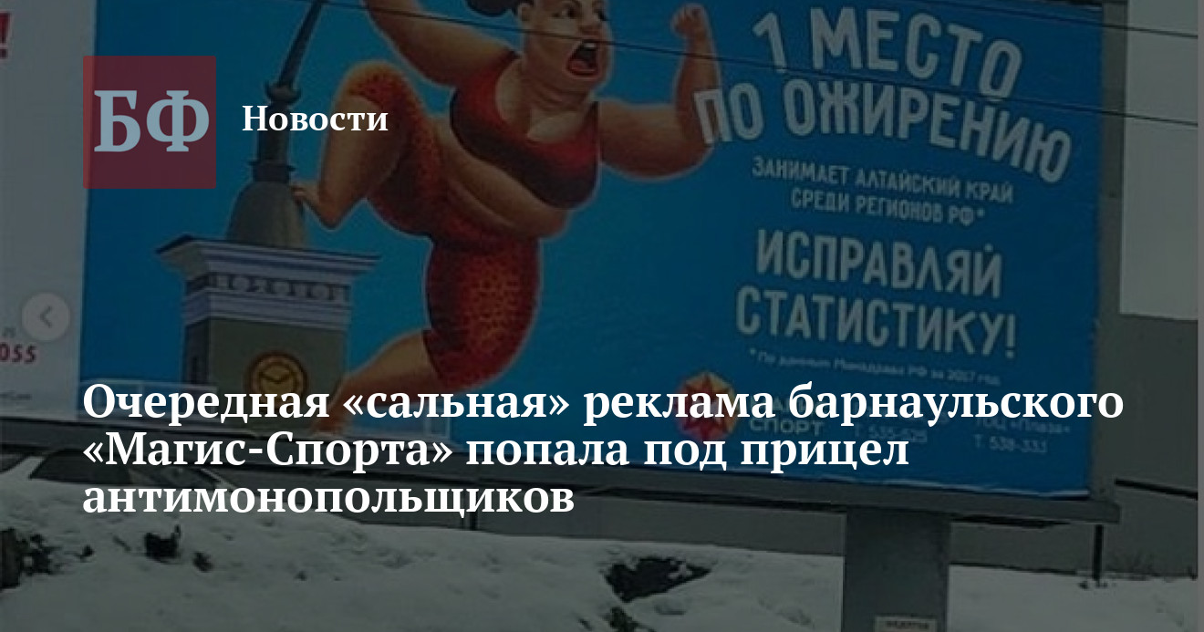 Стоит отметить, что ООО «Магис-Спорт» уже не раз оказывалось под прицелом антимонопольщиков, которым с завидной регулярностью приходится проверять рекламные слоганы компании. Так, в феврале 2016 года барнаулец Алексей Хоменко пожаловался в краевое Управление федеральной антимонопольной службы на рекламу фитнес-клуба «Магис-Спорт» со слоганом «Было — сало». Он считал, что это выражение оскорбляло полных людей и сравнивало их с животными. Однако сотрудникам управления так и не удалось доказать, что тон подобной рекламы оскорбителен.