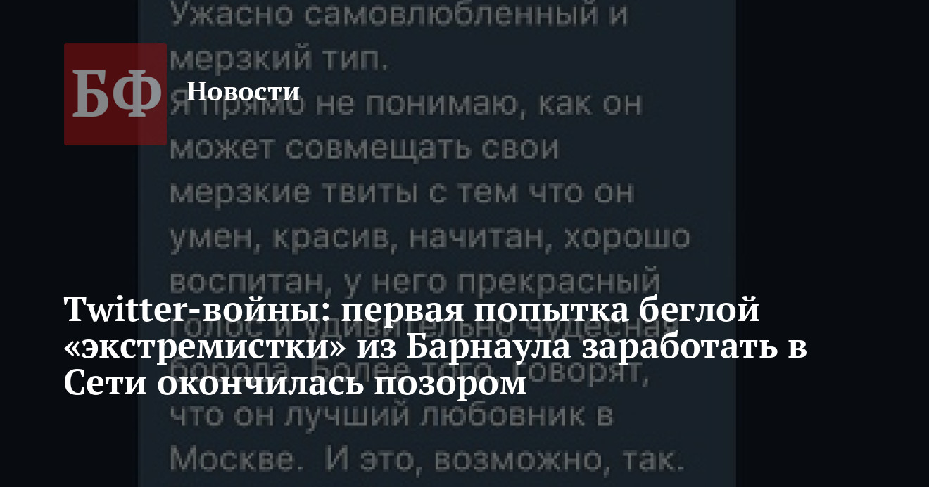 Сбежавшая в Украину «интернет-экстремистка» Мария Мотузная попыталась заработать первые деньги за счет обрушившейся популярности. Заказ рекламы на 30 тысяч рублей у нее сделал сам администратор сообщества «Настоящий Лентач» «ВКонтакте» Марк Шейн. В итоге, правда, Мотузной пришлось оправдываться перед пользователями Сети после обвинений в нежелании отказаться от жизни на «донаты» (пожертвования).
