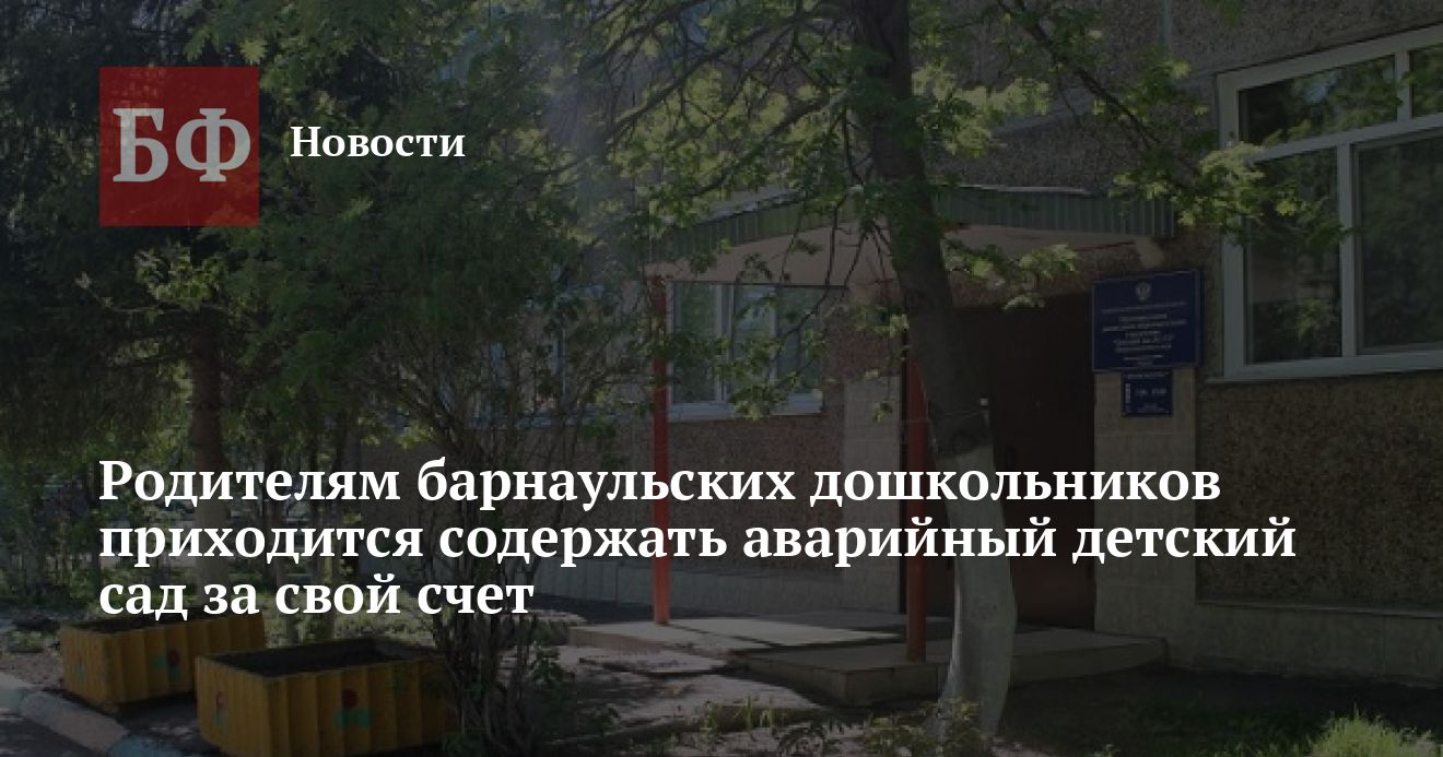 Жители Барнаула, чьи малолетние дети посещают детский сад № 172 в Индустриальном районе города, рассказали ИА «Банкфакс» о плачевном состоянии старого здания. По словам одного из членов попечительского совета учреждения Ивана Коха, у чиновников не хватает средств на ремонт и содержание объекта, а заведующая якобы предлагает им самим оплачивать все необходимые работы.