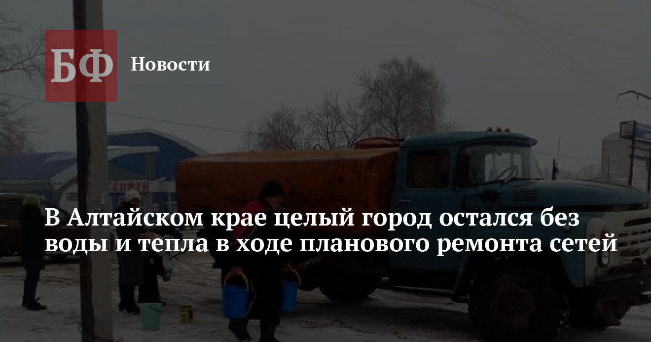 С 22 ноября 2018 года жители Змеиногорска вынуждены перебиваться сухим пайком из-за того, что местный водоканал взялся за ремонт трубы, сообщает «Змеиногорский вестник». Воды в городе нет уже почти сутки, причем не наполняется и система теплоснабжения. Как сообщили ИА «Банкфакс» в городской администрации, у них «пропала труба», и до вечера 23 ноября управиться не получится.