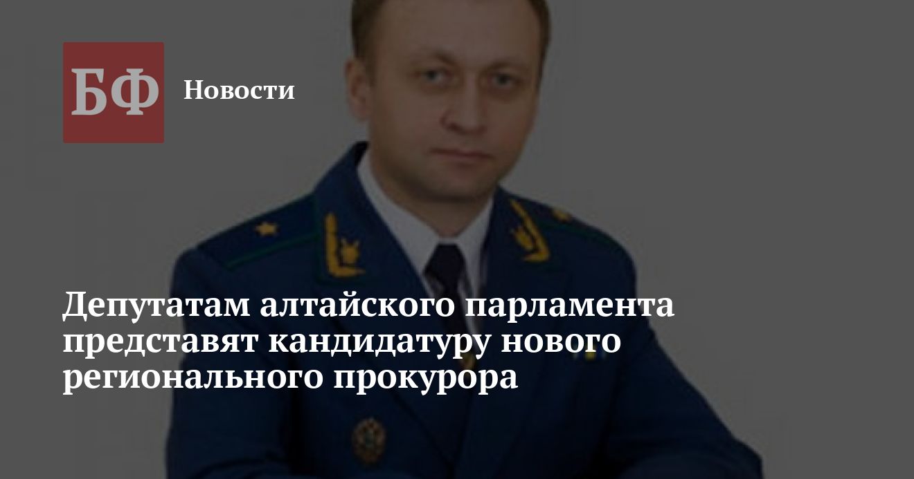 13 декабря в Алтайское Заксобрание поступило представление генерального прокурора России Юрия Чайки о согласовании кандидатуры прокурора Алтайского края. По данным пресс-службы АКЗС, речь идет об уроженце региона Александре Рудневе, который последние восемь лет работал в Волгоградской области.