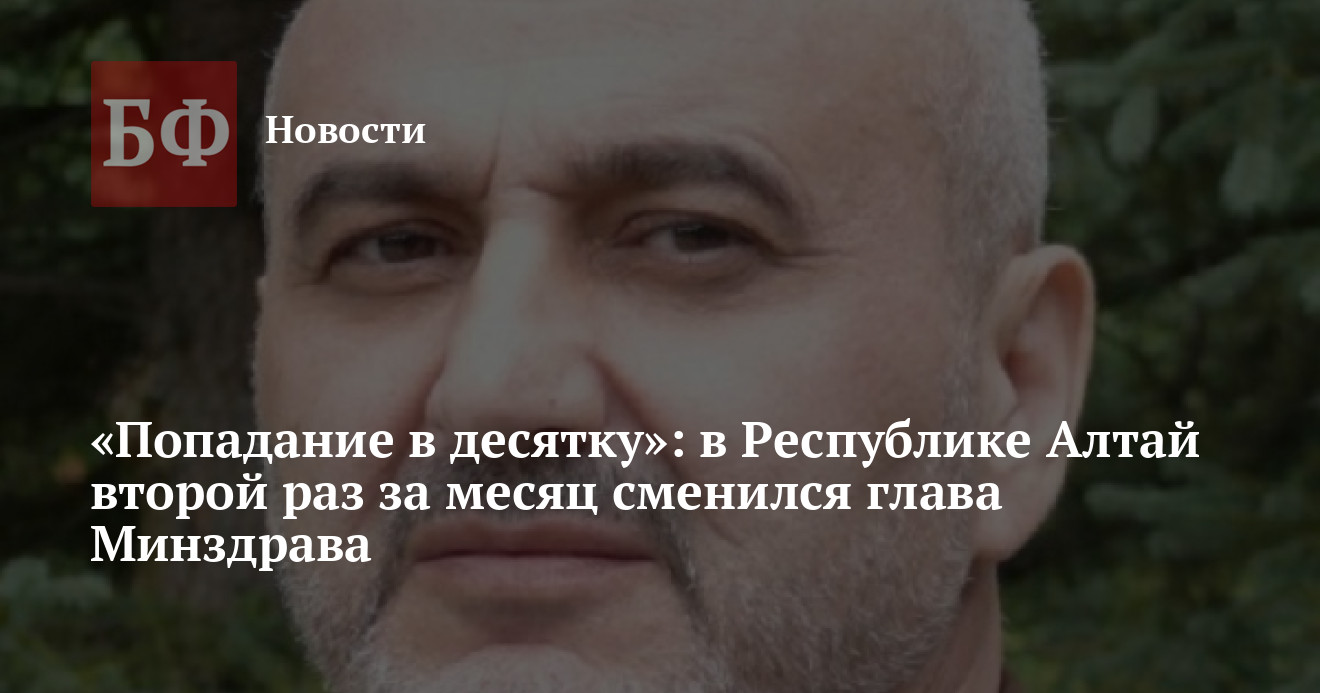 Глава Республики Алтай Александр Бердников сообщил об очередном назначении в структуре регионального правительства. Как сообщается на сайте регионального правительства, министром здравоохранения Республики Алтай стал главный врач Кош-Агачской районной больницы Андрей Макин. Смена власти в республиканском Минздраве стала неожиданностью для многих, поскольку прежний руководитель ведомства Павел Решетов был назначен всего несколько месяцев назад, а и. о. министра Валентина Мунатова занимала пост две недели.