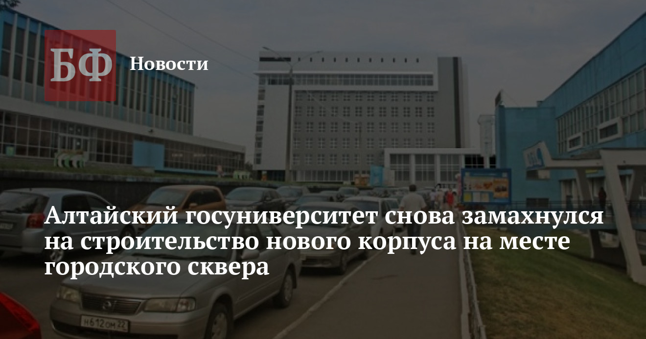 Напомним, что еще Алтайский государственный университет еще в 2017 году планировал строительство нового корпуса на этом месте Тогда также говорилось о предпочтительном месте на территории сквера. Предполагалось что это будет учебно-лабораторный корпус, его площадь будет более 15 тысяч кв. м. В нем запланирован актовый зал с сопутствующей инфраструктурой. Источники финансирования объекта тогда не были определены.