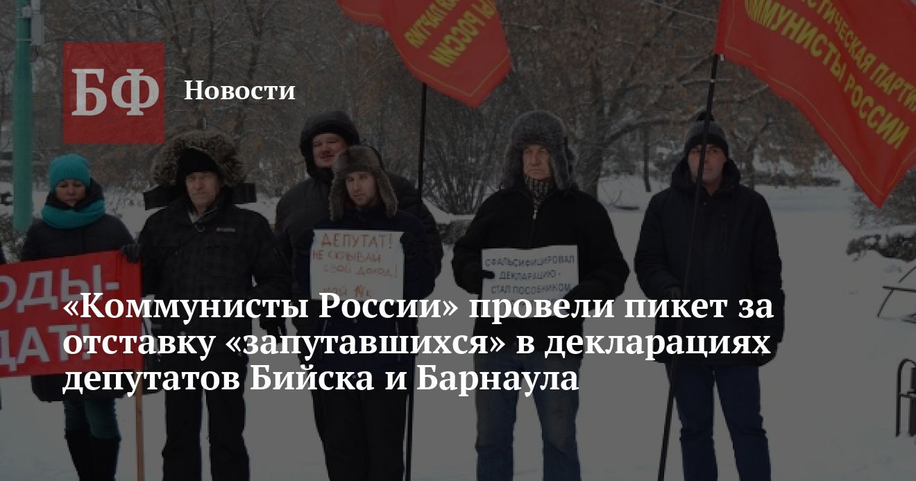 12 января в Бийске активисты партии «Коммунисты России» провели протестную акцию, требуя от депутатов гордумы, уличенных в ошибках при составлении деклараций о доходах, сложить полномочия. Об итогах мероприятия в партийном сообществе «ВКонтакте» рассказал лидер алтайских коммунистов Сергей Матасов.