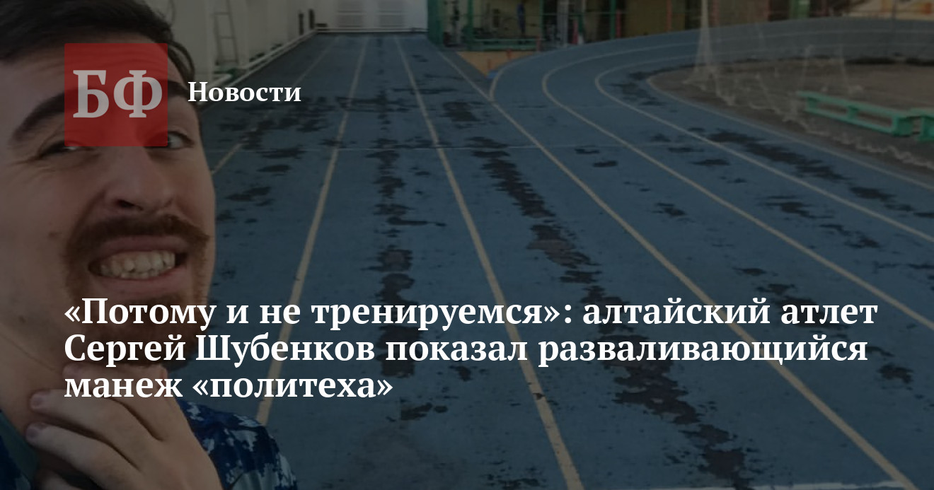 «Ну вот примерно поэтому мы в манеже АлтГТУ не тренируемся. Кстати, покрытие поменяли чуть больше трех лет назад — тогда заменили полувековые резиновые листы, но в итоге что-то пошло не так. Короче, бойтесь своих желаний, ибо они могут исполниться», — написал в своем посте во «ВКонтакте» Сергей Шубенков. На фото спортсмен стоит в зале, выражая явное недоумение состоянием площадки. На фоне те самые протертые резиновые листы, которые действительно выглядят очень печально.