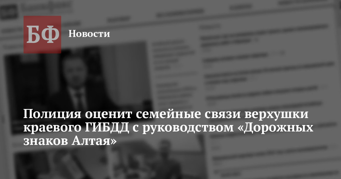Временно исполняющий обязанности начальника ГУ МВД по Алтайскому краю Александр Лаас назначил проверку по опубликованной в СМИ информации о якобы имеющихся родственных связях между бывшим начальником отделения дорожной инспекции и организации дорожного движения ГИБДД Барнаула Андреем Дорошем (с 2018 года он служит в краевом ГИБДД) и соучредителем компании «Дорожные знаки Алтая» Галиной Иваниной. Об этом ИА «Банкфакс» рассказали в пресс-службе ведомства.