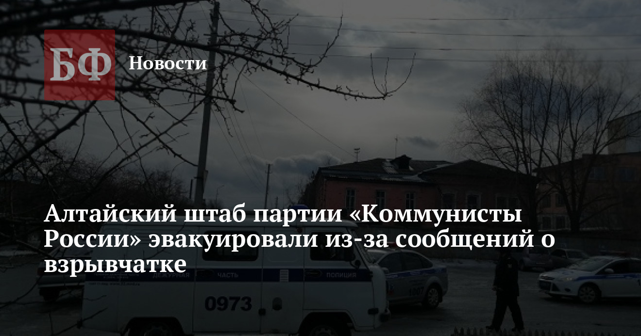 5 марта днем полиции Бийска пришлось эвакуировать сразу два городских здания — торговое и административное — из-за поступивших сообщений о минировании. В числе прочих объектом внимания лжетерорристов оказалось реготделение партии «Коммунисты России», Россельхозцентр, а также магазин петербургского ритейлера «Лента». Данную информацию корреспонденту ИА «Банкфакс» сообщил первый секретарь крайкома коммунистической партии Сергей Матасов.
