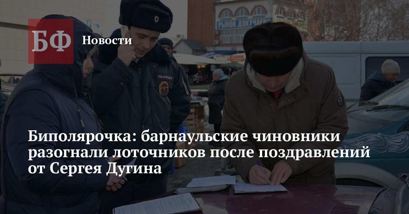 15 марта глава администрации Барнаула Сергей Дугин поздравил горожан с Днем работника торговли. На следующий день после поздравления представители мэрии, заручившись поддержкой полицейских и народных дружинников, провели рейд по пресечению несанкционированной торговли и разогнали уличных продавцов, сказано на сайте администрации Барнаула.