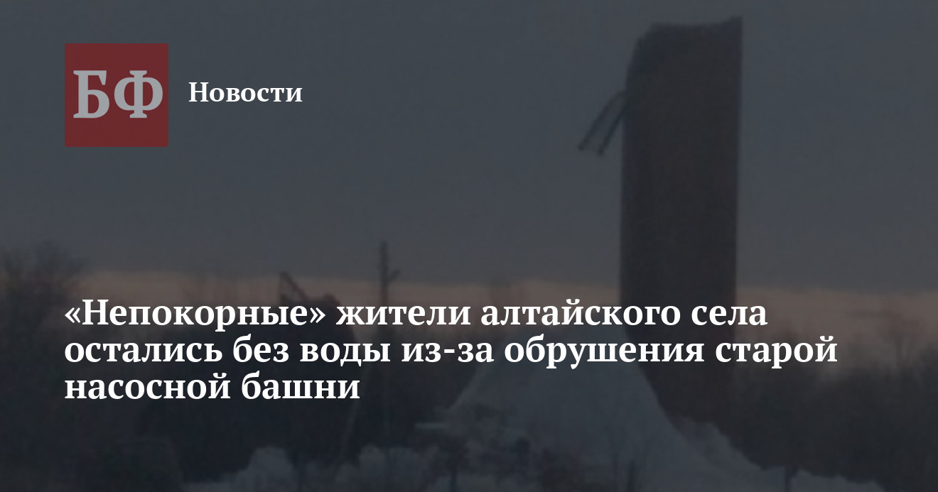 Позже сельчан поддержали и представители антикоррупционного центра «Трансперенси Интернешнл — Россия», которые собирались обратиться в СУ СКР по Алтайскому краю, чтобы проверить соблюдение условий муниципального контракта, благодаря которому жители села Андроново Тюменцевского района полгода якобы пользуются водопроводом. Однако ситуация так и не прояснилась. В результате старая башня обрушилась, и сельчане снова рискуют остаться без воды на долгое время.