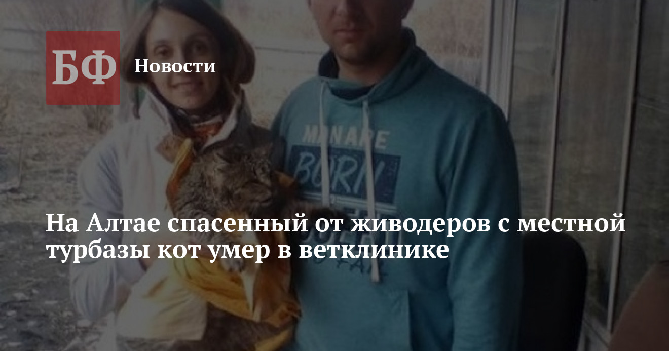 По сведениям «Новостей Горного Алтая», спасенного кота в тот же день передали майминским волонтерам из организации «Котопес», а те отнесли животное в ветеринарную клинику. Как сообщил главный ветеринарный врач Майминского района Михаил Коновалов, утром 6 апреля несчастный кот скончался от отека легких. По его словам, когда кот поступил в клинику, врачи удачно провели реанимационные мероприятия, состояние животного стабилизировалось, а температура тела поднялась с 32 °C до 36 °C. Однако на следующий день утром коту стало хуже, появилась сильная одышка. Врачи предположили отек легких, начали откачивать оттуда жидкость, но спасти животное не смогли.