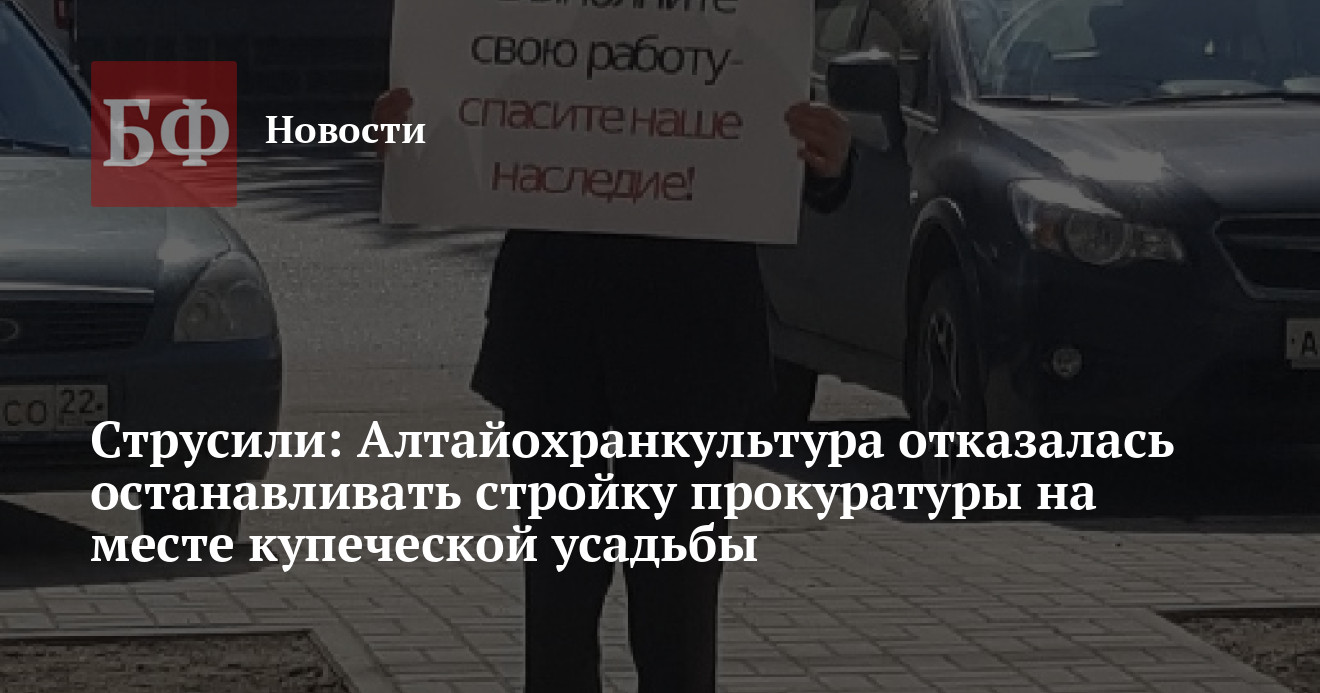 В частности, ведомство не устроило, что среди предоставленных общественниками документов не было актов натурного обследования зданий и библиографических справок, подтверждающих историческую и культурную ценность комплекса. Активисты расценили это как трусость и нежелание вступать в конфликт с прокуратурой. После того, как ответ был получен, кандидат исторических наук Данил Дегтярев провел одиночный пикет у здания Алтайохранкультуры, требуя от чиновников, чтобы те выполнили свою работу. На удивление на этот раз представители ведомства не остались глухи: к историку вышел врио начальника управления Александр Урбах.