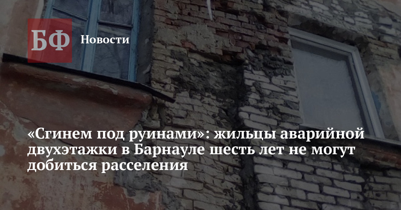 Семьи с детьми и пенсионеры из Барнаула, проживающие в старом двухэтажном доме по улице Советской Армии, 54, пожаловались на бездействие городских властей, которые уже шесть лет не могут решить вопрос с их расселением. Как рассказали ИА «Банкфакс» представители инициативной группы дома, сроки их долгожданного переезда уже несколько раз переносили, а очередной поставили на 2025 год. Однако жильцы аварийной двухэтажки боятся, что не доживут до этого момента, поскольку здание, по их мнению, в любой момент может сложиться, как карточный домик. Чиновники меж тем признают, что ситуация сложилась непростая, и ее планируется разрешить не позднее 2023 года, сообщили редакции в пресс-центре города.