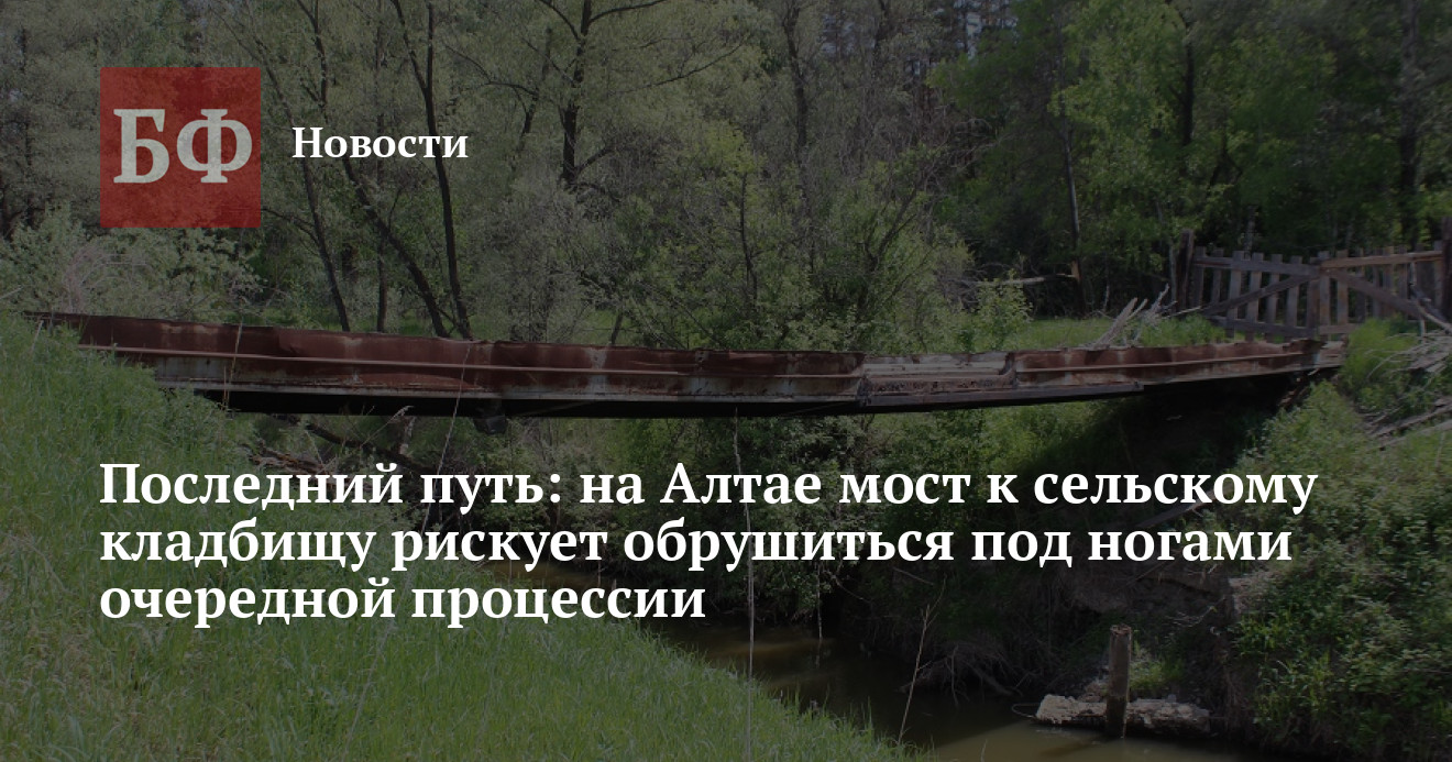 Жители села Кошелево в Алтайском крае опасаются обрушения аварийного моста, пролегающего через речку Тальменку. Дорога через него — единственная, по которой можно добраться до сельского кладбища, однако мост уже много лет не видел никакого ремонта и успел серьезно просесть под тяжестью транспорта, который везет покойников и тех, кто пришел проводить их в последний путь. Сельчане бьют тревогу, опасаясь, что в какой-то момент он просто не выдержит и обрушится. Тем не менее денег на его ремонт в бюджете района пока нет, информирует «Тальменская жизнь».