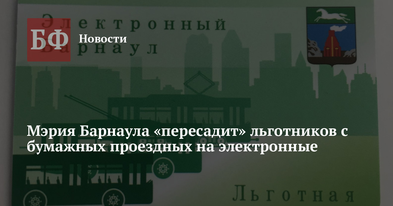 С 15 июля федеральных и региональных льготников Барнаула переведут на электронную транспортную карту, которая заменит бумажные проездные старого формата, сообщила мэрия Барнаула. Таким образом городские власти смогут вести учет этой категории граждан, так как новые проездные будут фиксироваться терминалом кондуктора. Вместе с тем у барнаульцев могут возникнуть некоторые проблемы с инновационными технологиями в связи с резким переходом и безальтернативной необходимостью обращаться в «Почту России».