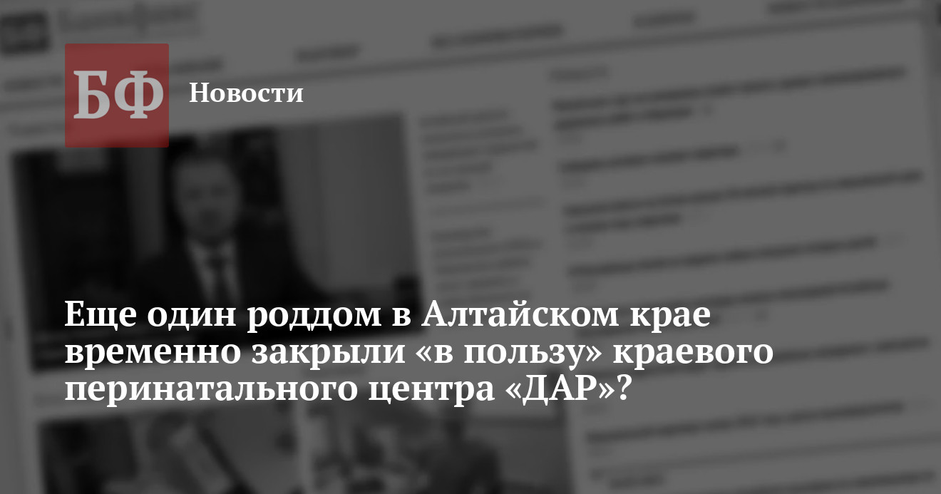 Родильный дом городской больницы № 2 в Бийске временно закрыли для приема беременных горожанок. Данную информацию ИА «Банкфакс» подтвердили в Министерстве здравоохранения Алтайского края. В течение месяца будущих мам будут отправлять в бийскую ЦГБ, сообщили в ведомстве. В то же время «Бийский рабочий» утверждает, что одним из пунктов назначения для рожениц также будет барнаульский перинатальный центр «ДАР».