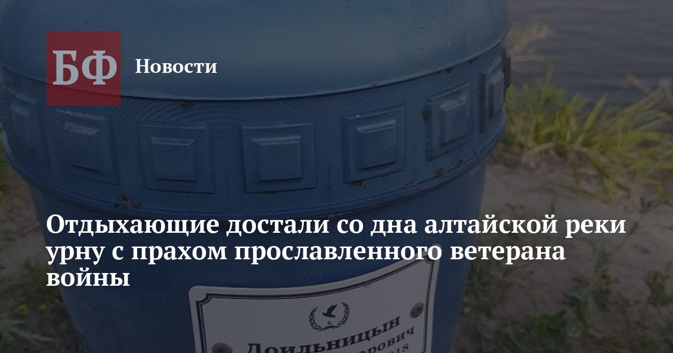 13 июля днем житель поселка Тальменка Максим Яровой обнаружил в реке Чумыш необычную находку, которая повергла в шок его и других отдыхающих. Оказалось, что на дне водоема покоилась урна с прахом кавалера ордена Красной звезды Евгения Доильницына, который, перешагнув 100-летний рубеж, скончался в ноябре прошлого года. Об инциденте сообщает «Тальменская жизнь».