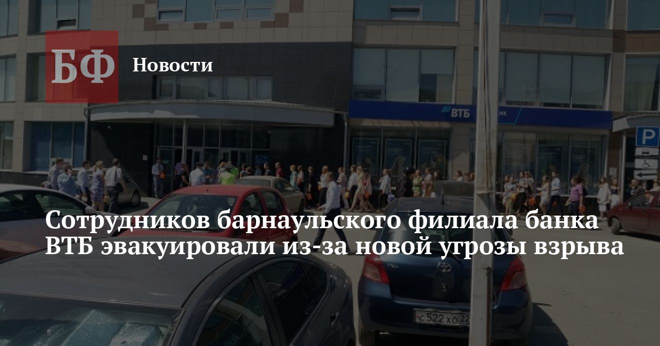 15 июля днем в Барнауле произошла экстренная эвакуация работников филиала банка ВТБ, расположенного на улице Малахова. Как рассказали ИА «Банкфакс» источники в указанной кредитной организации, им поступила угроза о заложенной в здании бомбе. Однако позже данная информация не подтвердилась.