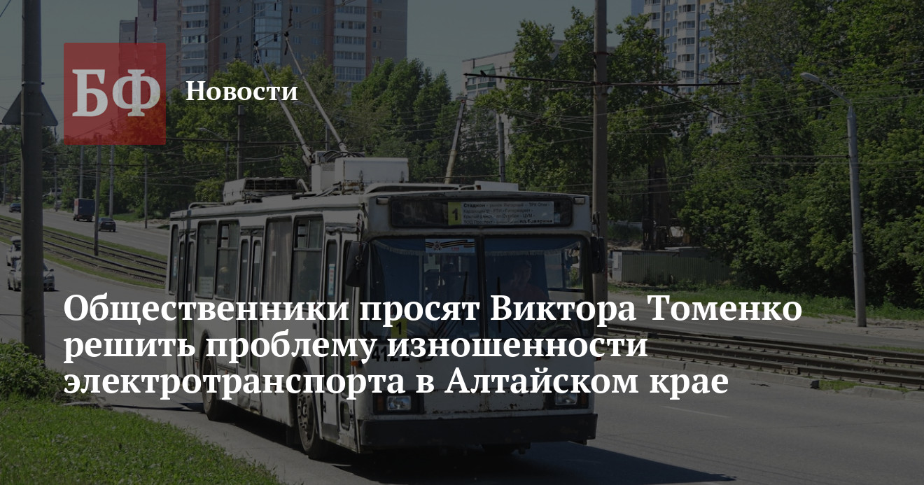 Активисты из общественных организаций написали обращение к губернатору Алтайского края Виктору Томенко с просьбой помочь заменить троллейбусы и трамваи в Барнауле, Бийске и Рубцовске. Общественники отметили, что степень изношенности электротранспорта в городах региона составляет от 70% до 95%. В связи с этим они предлагают обновить подвижной состав за счет списанных моделей из Москвы, где машины регулярно заменяют на новые.
