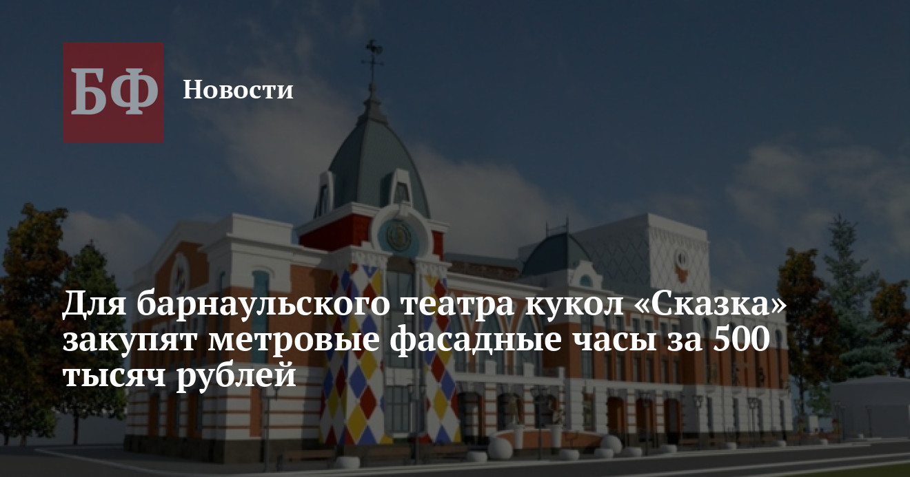 На одной из башен еще недостроенного здания Алтайского государственного театра кукол «Сказка» в Барнауле установят гигантские часы. Краевое правительство уже нашло подрядчика, который, согласно данным портала Госзакупок, поставит и смонтирует их почти за 500 тысяч рублей.