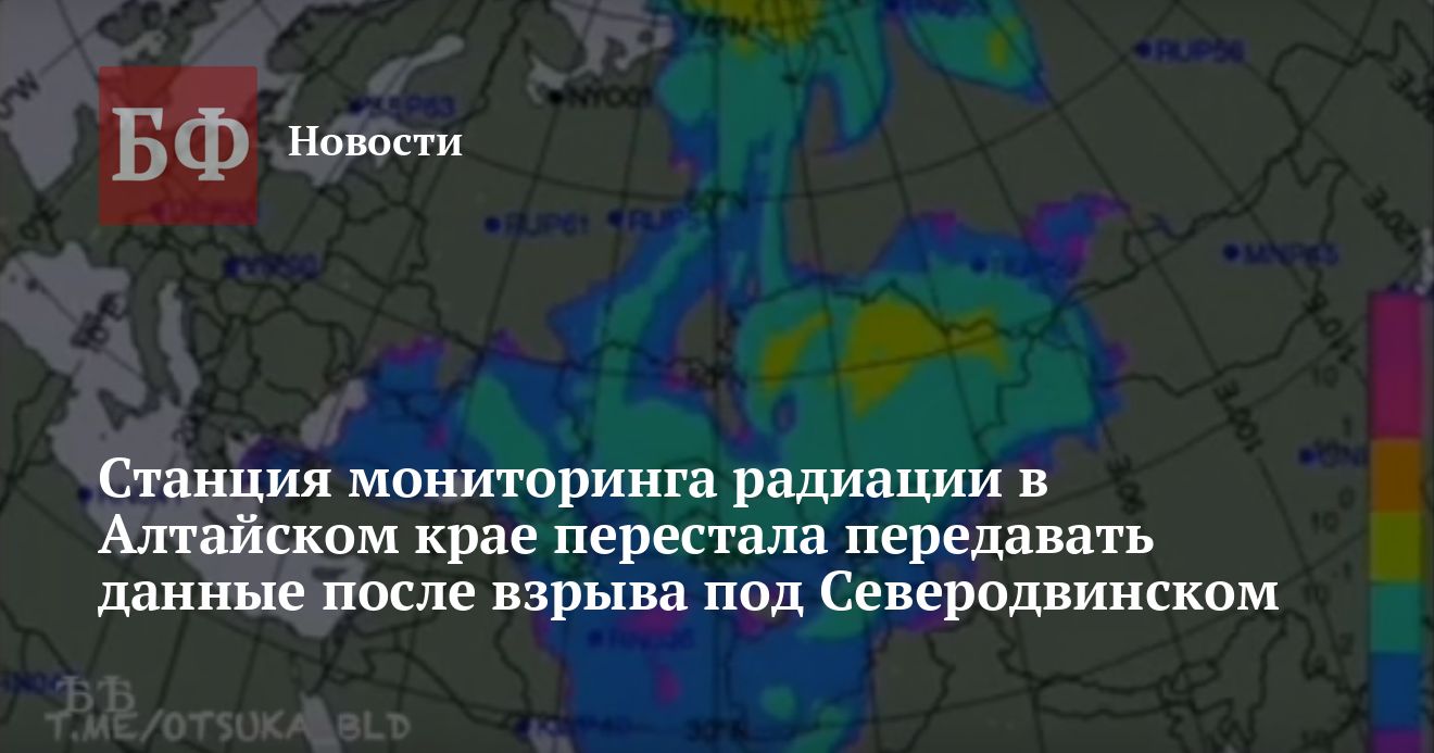 Станция замера радиации в Залесовском районе Алтайского края, входящая в международную систему мониторинга ядерных испытаний, 13 августа перестала передавать информацию коллегам. Об этом сообщает ТАСС со ссылкой на The Wall Street Journal, который цитирует исполнительного секретаря подготовительной комиссии Организации по Договору о всеобъемлющем запрещении ядерных испытаний (ОДВЗЯИ) Лассину Зербо. Официальные причины перебоев не называются, но на Западе связывают их со взрывом на военном полигоне в Архангельской области 8 августа, после которого произошел скачок уровня радиации и выброс нуклидов.
