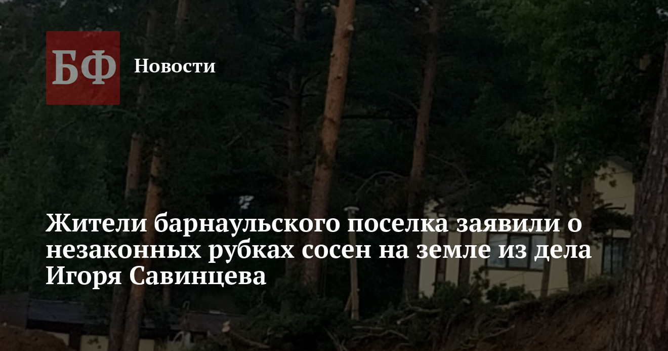 Депутат Алтайского Заксобрания от партии ЛДПР Евгения Боровикова получила обращение от жителей поселка Ерестной в черте Барнаула, которые жалуются на бесконтрольную рубку соснового бора. Свое письмо они подкрепили фотографиями, на которых видно, что под снос пошли здоровые сосны, а сама площадка, судя по всему, готовится для строительства. Об этом сказано в сообщении реготделения партии. Любопытно, что история этой земли связана с бывшим мэром Барнаула Игорем Савинцевым.