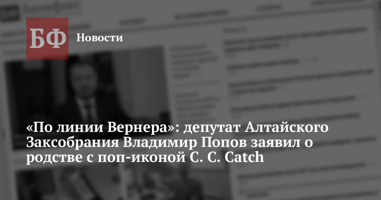 В последние дни внимание краевых и федеральных СМИ привлекает депутат Алтайского Заксобрания, бизнесмен Владимир Попов, который, по информации Telegram-каналов, пригласил на празднование юбилея жены известную поп-исполнительницу 1980-х годов C. C. Catch. В соцсетях в том числе обсуждают возможный гонорар звезды. Однако в разговоре с изданием Daily Storm депутат заявил, что певица приходится ему двоюродной сестрой и потому он ей не платил. Корреспонденту ИА «Банкфакс» он уточнил, по какой линии немецкая певица нидерландского происхождения приходится ему родственницей.