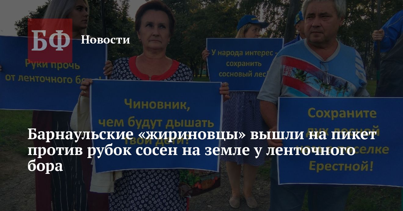 ЛДПР провела в Барнауле протестную акцию с требованием прекратить рубки ленточного бора в городском поселке Ерестной, которые местные жители считают незаконными. По сведениям барнаульцев, здесь собираются что-то строить, как и несколько лет назад, когда на участке вел деятельность бывший мэр Барнаула Игорь Савинцев, попавший под уголовное преследование. В пресс-службе городской администрации оперативно не пояснили ИА «Банкфакс», какого рода работы ведутся на земле с «дурной славой».