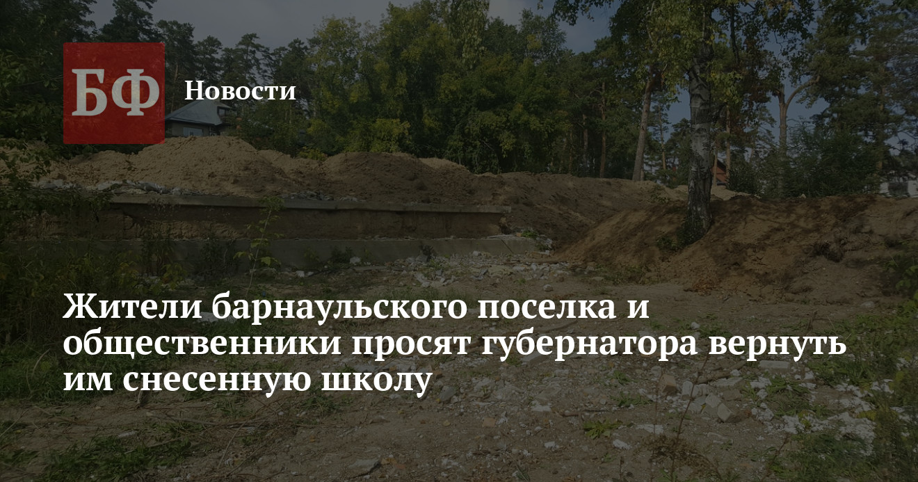 Активисты общественной организации «Гражданский патруль» обратились к губернатору Алтайского края Виктору Томенко с просьбой провести проверку по факту сноса школы в барнаульском поселке Ерестной и последующей передачи частей земельного участка в частные руки. Близлежащие районы лишились учреждения образования еще в 2009 году после пожара, и детей перевели в окрестные объекты. Но теперь школьников в Ерестном становится все больше, и они вынуждены ходить несколько километров пешком или ехать несколько остановок на общественным транспорте.