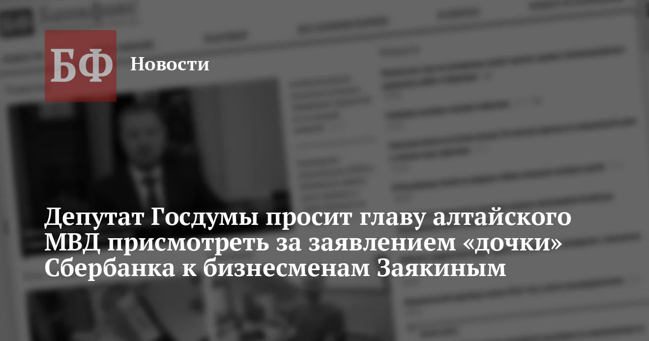 Член Госдумы от ЛДПР Андрей Луговой направил начальнику ГУ МВД по Алтайскому краю Андрею Подоляну и прокурору региона Александру Рудневу запросы о судьбе разбирательства в отношении барнаульских бизнесменов братьев Заякиных, которые могут быть причастны к крупному мошенничеству. Луговой считает, что один из районных отделов полиции не принимает никаких действий по расследованию преступлений, которые, по утверждению ООО «СБК Стекло» (100% «дочка» Сбербанка), совершило руководство группы компаний «М2». Подробности приводятся в сообщении «СБК Стекло».