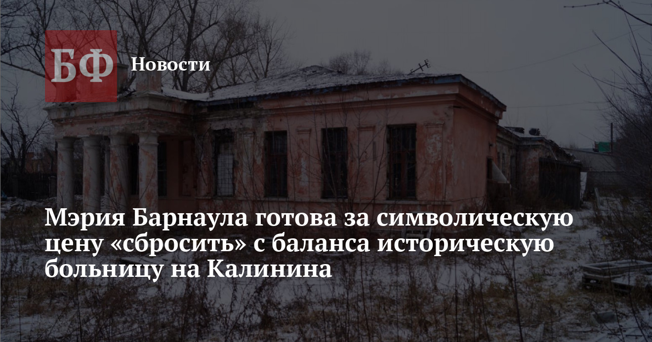 Администрация Барнаула готовится выставить на продажу объект культурного наследия — бывшую поликлинику на проспекте Калинина, 24, которая была построена в 1930-е годы. По условиям приватизации, новый собственник должен будет провести реконструкцию здания и использовать его, следуя охранным обязательствам, в связи с этим цена достаточно низкая. Вероятно, большинство барнаульцев уже забыло о существовании этой больницы, ведь она затерялась в промзоне и уже около 10 лет не используется. Постановление об условиях приватизации опубликовано на сайте мэрии.