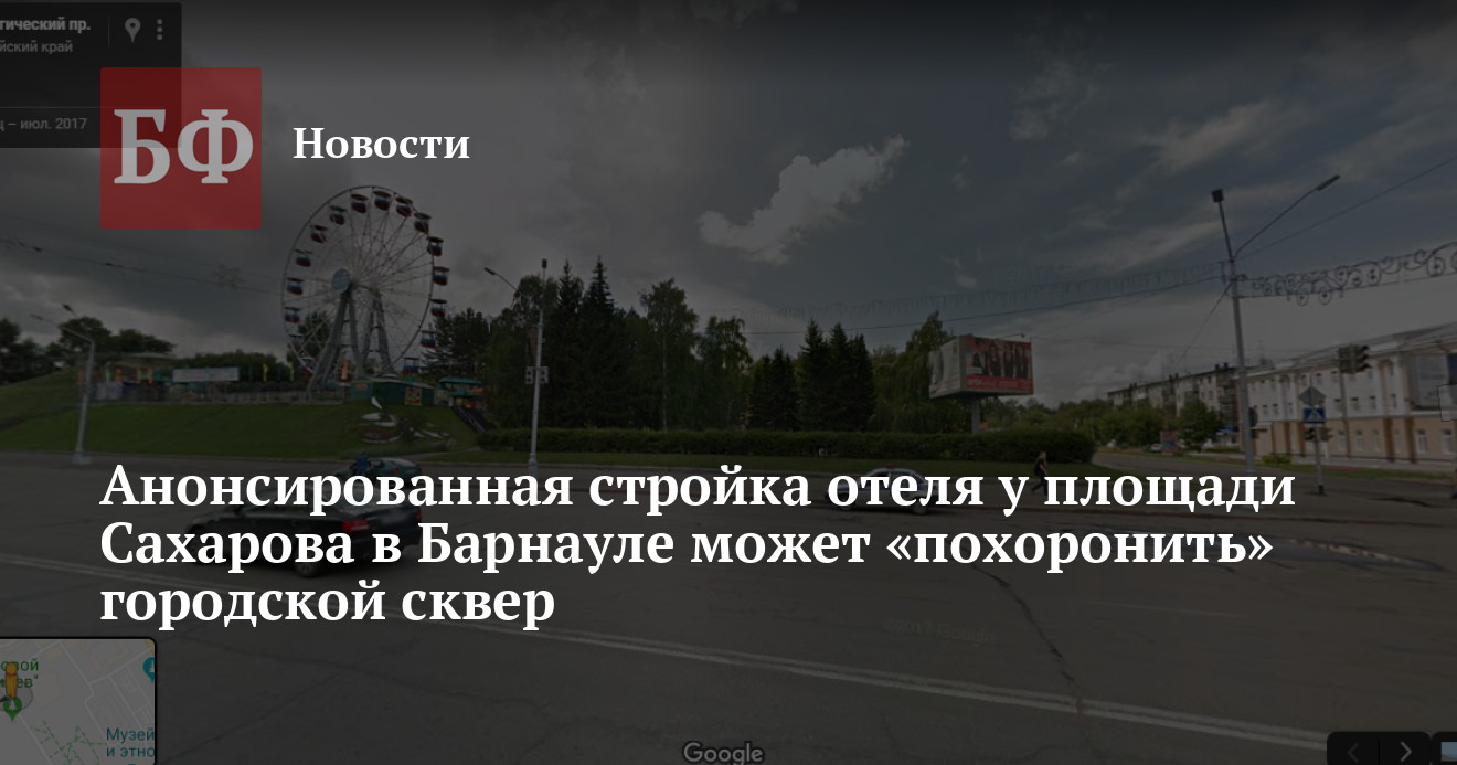 Опасения жителей Барнаула о том, что крупный отель мирового бренда Radisson могут построить на холме на площади Сахарова вместо парка развлечений «Барнаульская крепость», рискуют не оправдаться. По данным ГТРК «Алтай», для этих целей рассматривается сквер на пересечении улиц Молодежная и проспекта Социалистического. Также высказываются предположения, что перед тем, как сровнять с землей очередной зеленый уголок в городе, могут поинтересоваться мнением его жителей.
