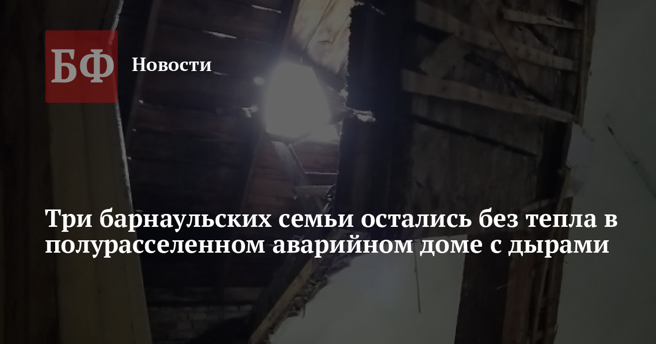 Тем временем оставаться в стенах разрушающегося дома крайне опасно. В квартирах слышен постоянный треск — в стенах увеличиваются трещины. Обрушение может произойти в любую минуту, но жителям некуда переезжать. Правозащитная организация уже направила официальные обращение по данным фактам губернатору Виктору Томенко и прокуратуре Алтайского края.