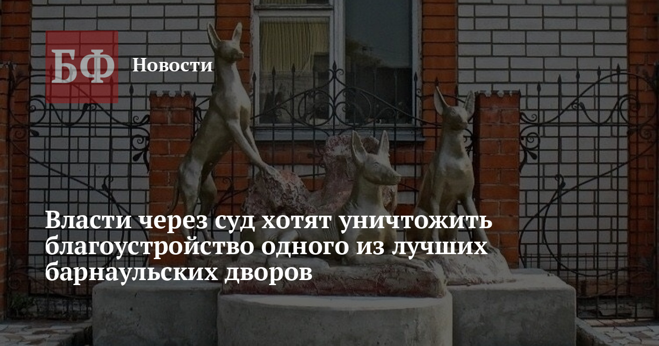 Согласно карточке, опубликованной на сайте Центрального районного суда Барнаула, заявление было подано чиновниками в начале августа текущего года. В качестве категории разбирательства указаны споры, связанные с землепользованием, а именно устранение препятствий в пользовании земельными участками и объектами недвижимости. Первое заседание назначили на 15 октября. Как утверждает ответчица, на ее клумбу пожаловались соседи, с которыми уже некоторое время продолжается конфликт. По данным Ларисы Давыдовой, жалобщики аргументируют свое обращение в администрацию не только самозахватом земли, но и упоминают жестокое обращение с животными. Якобы скульптура из трех собак символизирует негуманное отношение к четвероногим.