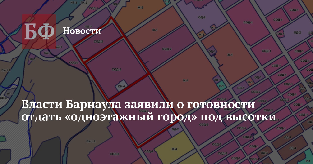Барнаульская мэрия уже распланировала высотную застройку одноэтажной части города, что анонсировалось ранее. Это следует из заявлений председателя комитета по строительству, архитектуре и развитию Барнаула Дмитрия Аристова, которые приводятся на сайте горадминистрации. Перемены также отражены в проекте Правил землепользования и застройки (ПЗЗ), который сейчас проходит общественные обсуждения.