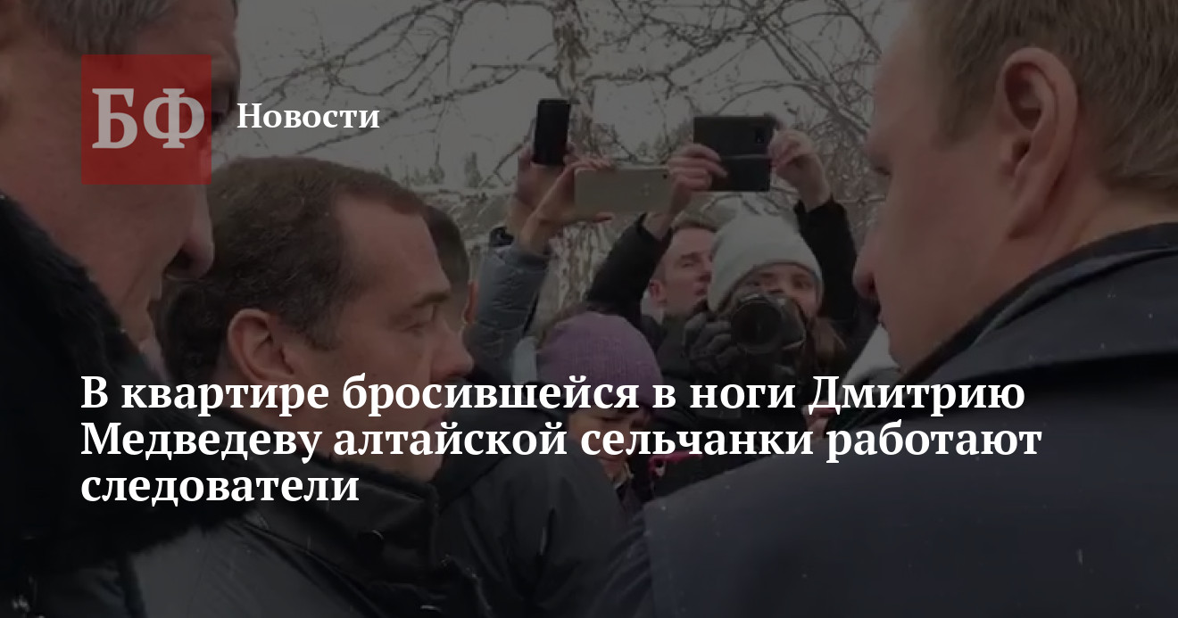 После совещания по развитию сельских территорий в селе Санниково губернатор Алтайского края Виктор Томенко отправился домой к местной жительнице Татьяне Кадукиной, которая до начала встречи, на улице бросилась в ноги премьер-министру. Женщина пожаловалась Дмитрию Медведеву на отсутствие в ее многоквартирном доме горячей воды. Глава региона пообещал сельчанке к вечеру, как только проводит столичных гостей, заняться ее вопросом. Между тем региональный следком оперативно организовал собственную проверку по данному поводу. При этом сама жительница села буквально через несколько часов после визита губернатора сообщила ИА «Банкфакс», что следователи уже работают у нее дома.