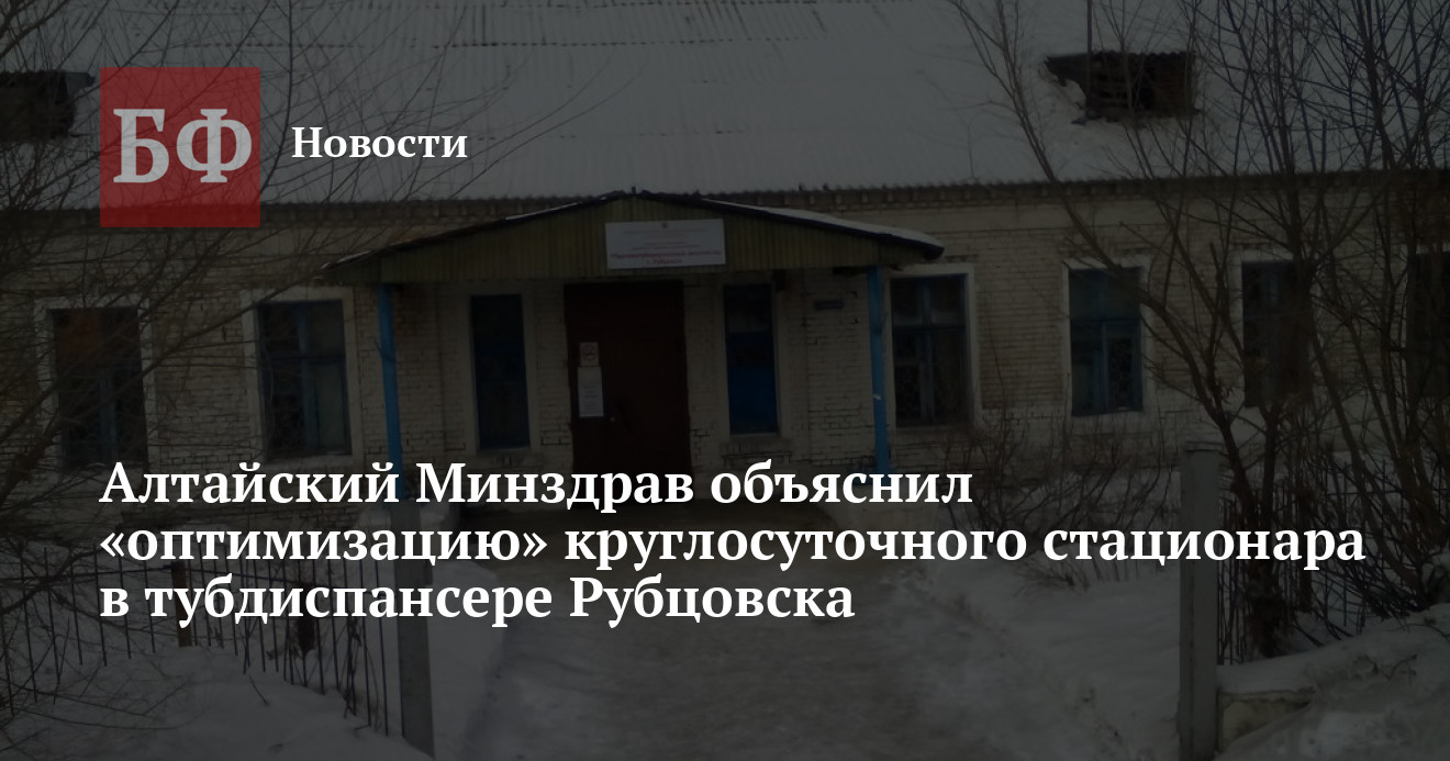 Сведения о прекращении госпитализации пациентов в легочно-терапевтическое отделение КГБУЗ «Противотуберкулезный диспансер Рубцовска» распространили в соцсетях. Копия соответствующего приказа от 15 ноября 2019 года за подписью министра здравоохранения Алтайского края Дмитрия Попова была опубликована в паблике «Инцидент Рубцовск», а также Telegram-канале «Алтайские крайности». Согласно указанному документу, с 25 ноября для оказания специализированной медпомощи в круглосуточном стационаре по профилю «фтизиатрия» пациентов Рубцовского округа будут направлять в Егорьевский район. До 18 декабря все пациенты «Противотуберкулезного диспансера Рубцовска» будут переведены на стационарное лечение в КГБУЗ «Лебяженская туберкулезная больница». Главврачу тубдиспансера Рубцовска Ивану Шатилову предписано с той же даты закрыть легочно-терапевтическое отделение и передать материальные ценности в медучреждение Егорьевского района. Контроль за исполнением приказа возложен на замминистра Наталью Белоцкую.
