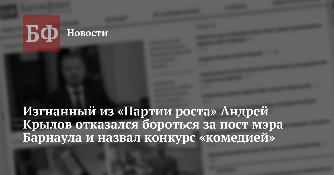 О своем намерении баллотироваться в мэры Крылов сообщил еще в августе текущего года, сразу после отставки Сергея Дугина. «Я думаю, что нашей городской администрации, а может и краевому правительству, нужно помочь. Я принял решение баллотироваться в мэры города Барнаула», — говорил тогда оппозиционер. Однако после того, как федеральное руководство «Партии роста» лишило его полномочий руководителя реготделения, он отказался от этих планов и раскрыл подоплеку своего заявления.