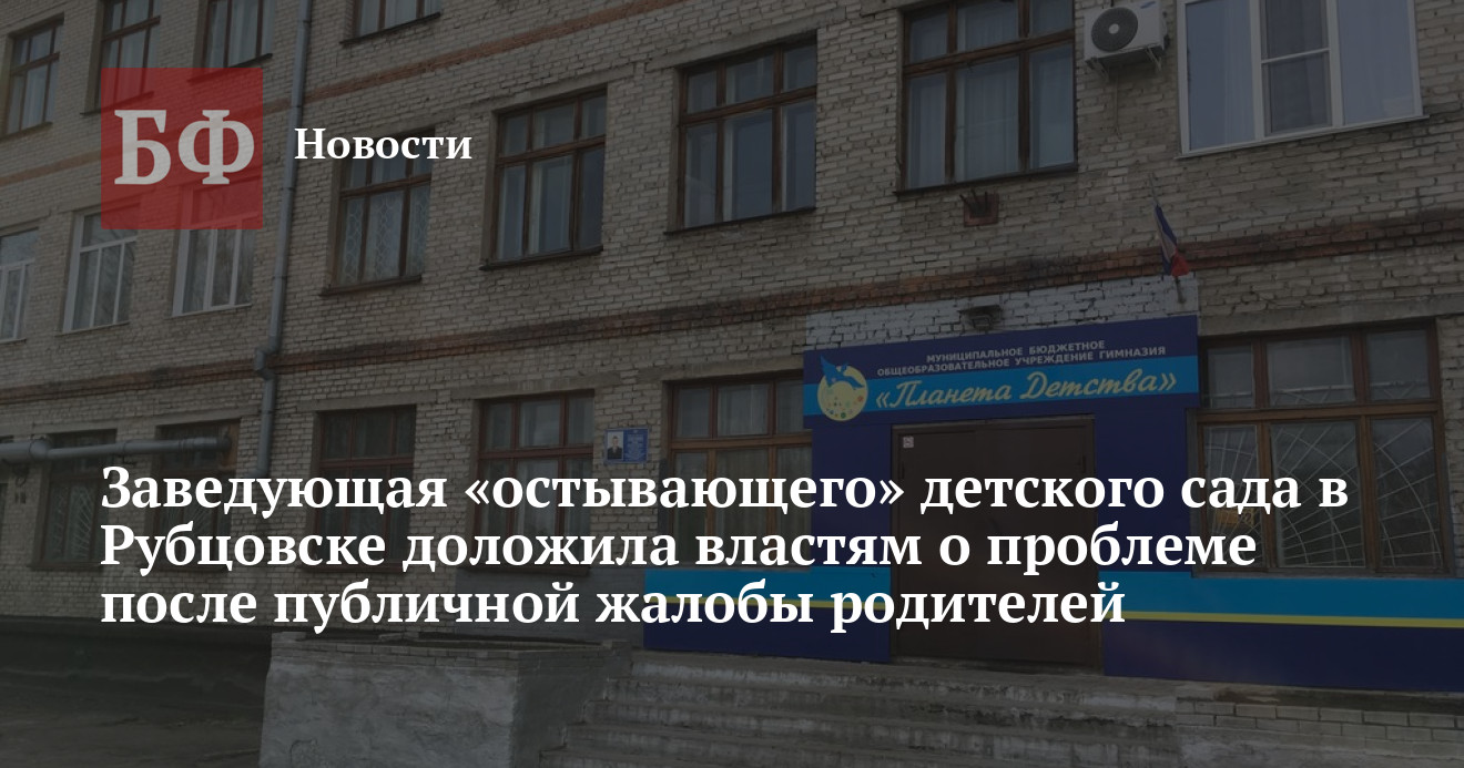 Со слов родителей детсадовца, их ребенок посещает МБОУ «Гимназия «Планета детства», расположенное в переулке Делегатском, 1. «Накануне был праздник, посвященный Дню матери. В группе температура воздуха была около 17 °C, работала «ветродуйка», в туалете и спальне температура гораздо ниже, можно сказать — ледник, ситуация никак не решается!» — заявили рубцовчане в Сети. Они добавили, что месяцем ранее жаловались на это заведующей детсадом Марине Хворостининой. Та якобы отвечала им, что ситуация находится на контроле. Однако спустя месяц проблема так и не была решена, поэтому горожане решили высказаться об этом публично.