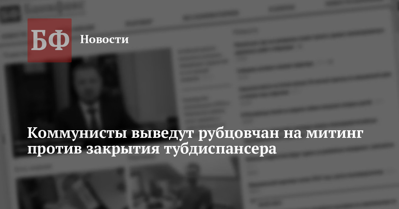 8 декабря в 12:00 на площади Ленина в Рубцовске состоится митинг КПРФ против закрытия круглосуточного стационара туберкулезного диспансера. Об этом ИА «Банкфакс» сообщили в горкоме партии. Коммунисты рассчитывают, что в мероприятии примут участие до 300 человек, которым небезразлична судьба медучреждения.