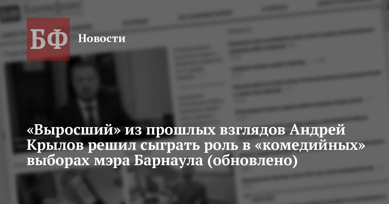 Бывший руководитель регионального отделения «Партии роста» в Алтайском крае Андрей Крылов неожиданно передумал и вновь решил принять участие в выборах главы Барнаула. На своей странице в Facebook он сообщил, что уже подал все необходимые документы. Примечательно, что менее месяца назад Крылов называл грядущие выборы «комедией», участвовать в которой он должен был только ради популяризации «Партии роста», как признался он сам.