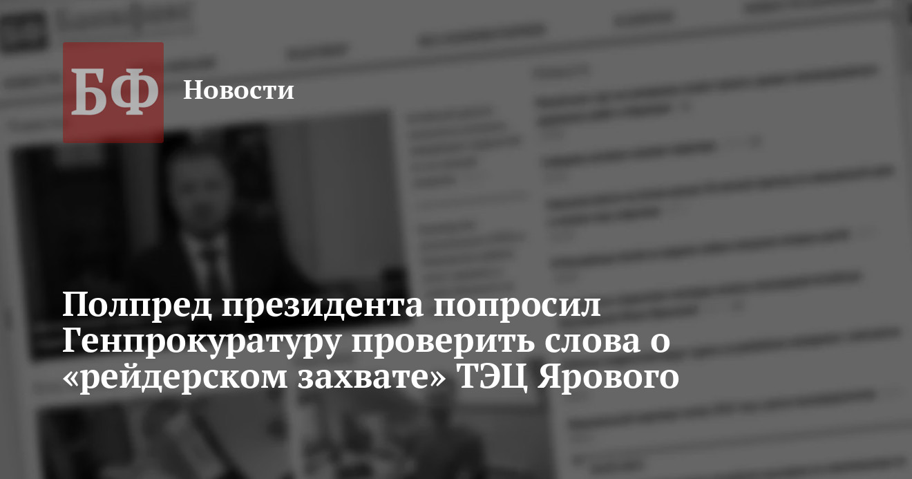 Собственник ТЭЦ Ярового Константин Вальтер, где в ноябре был введен режим ЧС из-за проблем с теплоснабжением, направил полпреду президента РФ в Сибирском федеральном округе Сергею Меняйло обращение с заявлением о происходящем со стороны властей рейдерском захвате станции. Меняйло в ответ попросил Генпрокуратуру подключиться к ситуации и проверить озвученную собственником информацию. Об этом сообщает «Интерфакс».