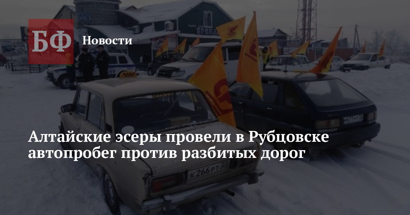 Как рассказал организатор мероприятия, председатель Совета местного отделения «Справедливой России» в Рубцовске Сергей Сущевский, 10 легковых автомобилей под знаменами партии проехали колонной по одной из самых «убитых» дорог в городе — Новоегорьевскому тракту до улицы Арычной. «Изначально автопробег был запланирован от улицы Алтайской в районе кафе „Пале-Рояль“ по улице Светлова, улице Комсомольская, улице Калинина, проспекту Ленина до переулка Промышленного, но этот маршрут администрация Рубцовска не согласовала, ссылаясь на отрицательное заключение Министерства транспорта Алтайского края», — подчеркнул он.